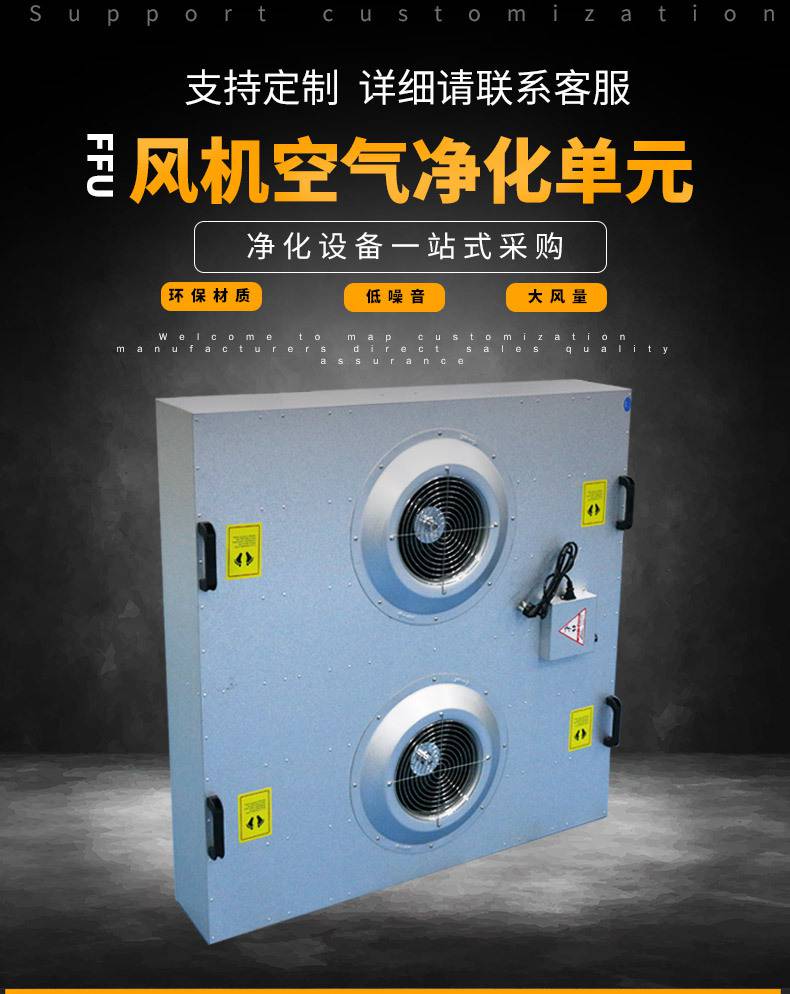 FFU風機過濾機組控制采用其公司開發之非接觸感應式三檔調速,電路均采用電器開關控制,控制安全平穩。彈性、多元化配置除標準機型外,可根據客戶需求,制作不同規格的非標產品。如:風管連接法蘭、濾網、箱體材質等變更。人性化設計機組附裝不銹鋼把手,使搬運及安裝更為方便快捷。