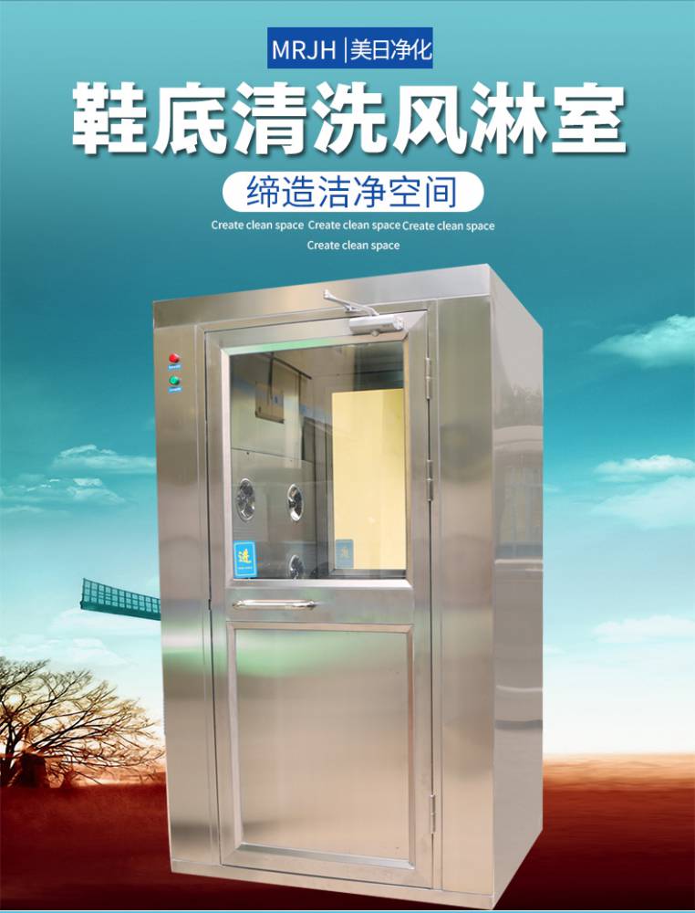 風(fēng)淋室是一種通用性較強(qiáng)的局部?jī)艋O(shè)備,安裝于潔凈室與非潔凈室之間。當(dāng)人與貨物要進(jìn)入潔凈區(qū)時(shí)需經(jīng)風(fēng)淋室吹淋,其吹出的潔凈空氣可去除人與貨物所攜帶的塵埃,能有效的阻斷或減少塵源進(jìn)入潔凈區(qū)。風(fēng)淋室/貨淋室的前后兩道門為電子互鎖,又可起到氣閘的作用,阻止未凈化的空氣進(jìn)入潔凈區(qū)域。