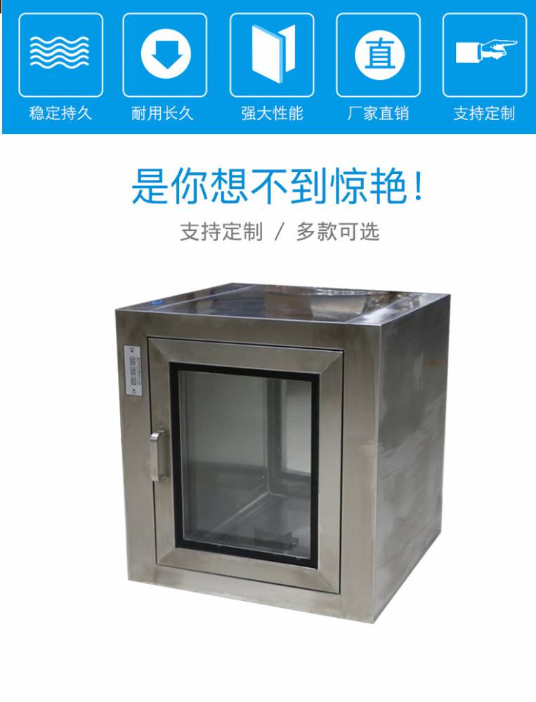 ⒈短距離傳遞窗工作臺面采用不銹鋼板,平整光潔耐磨