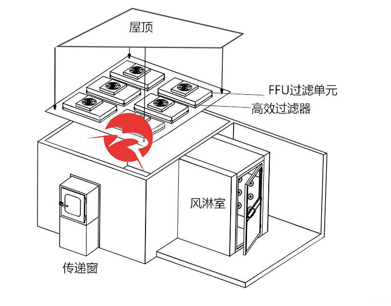 ⒍采用有隔板高效過(guò)濾器,過(guò)濾效率為:99.99%,確保凈化級(jí)別。
