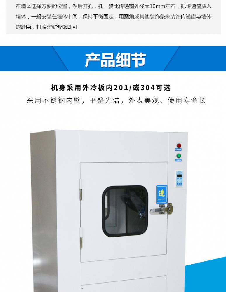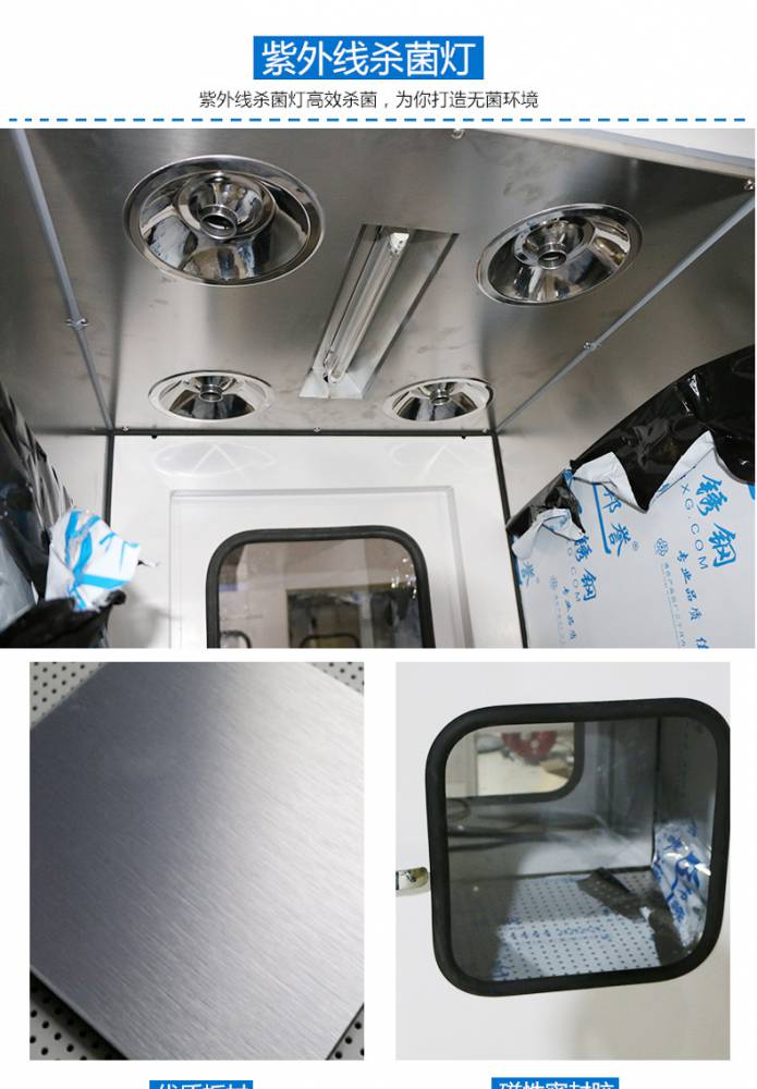 ⒈短距離傳遞窗工作臺(tái)面采用不銹鋼板,平整光潔耐磨