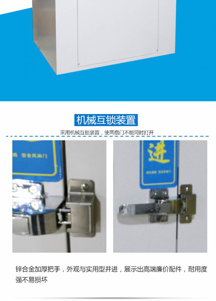 ⒊兩側(cè)門(mén)設(shè)有機(jī)械互鎖或電子互鎖、電子碰鎖裝置,確保兩側(cè)門(mén)不能同時(shí)處于開(kāi)啟狀態(tài)。