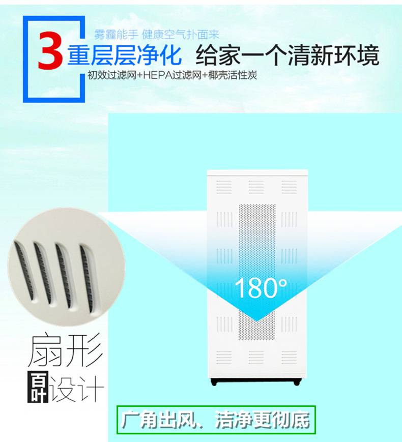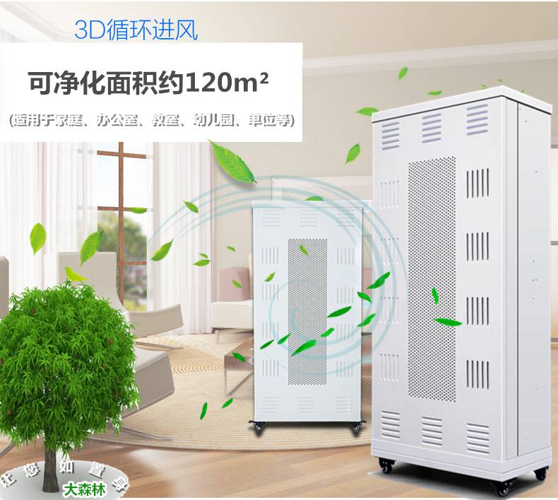 凈化器運行時,機器內的通風機使室內、車內空氣循環流動,污染的空氣通過機內的空氣過濾器過濾后,將各種污染物清除或吸附,然后通過裝在出風口的負離子發生器將空氣不斷電離,產生大量負離子,被微風扇送出,形成負離子流,達到清潔、凈化空氣的目的。