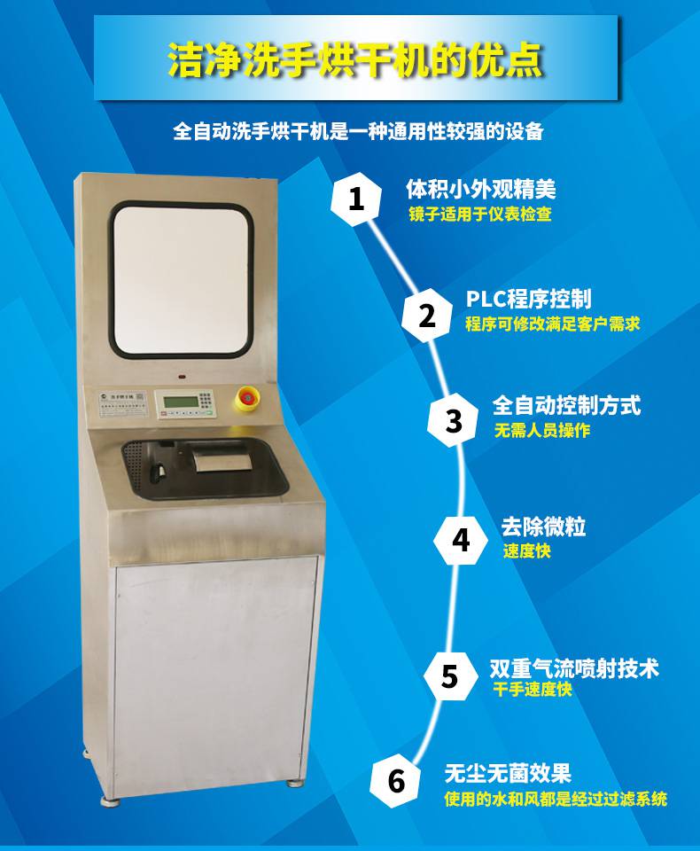 塵無菌室標(biāo)準(zhǔn)型全自動洗手烘干機(jī)是國家對食品制藥電子行業(yè)高 標(biāo)準(zhǔn)要求的產(chǎn)物,主要針對無塵無菌場合工作人員手部清潔及烘干使用,隨著產(chǎn)品技術(shù)、服務(wù)的不斷成熟,已經(jīng)有很多企業(yè)參考并采納洗手烘干機(jī)產(chǎn)品,如:上海臺積電 上廣電 天力士藥業(yè) 福士康精密 日月光電子 華星光電 同方半導(dǎo)體 夏普電子 瑞金醫(yī)院等等企業(yè),伴隨著社會的不斷進(jìn)步,洗手烘干機(jī)將被越來越多食品制藥及電子企業(yè)認(rèn)知并認(rèn)可,SHG-8388A標(biāo)準(zhǔn)型全自動洗手烘干機(jī)將為行業(yè)貢獻(xiàn)自己的力量。