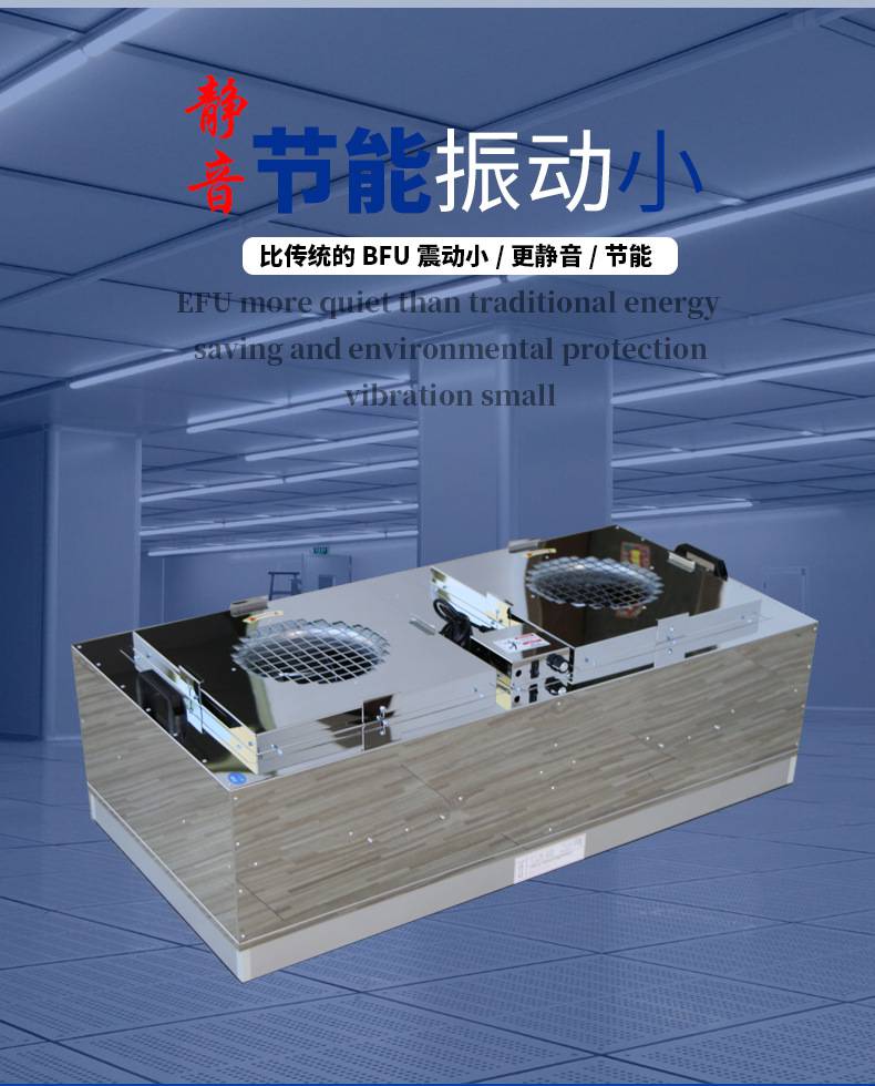 FFU風機過濾機組控制采用其公司開發之非接觸感應式三檔調速,電路均采用電器開關控制,控制安全平穩。彈性、多元化配置除標準機型外,可根據客戶需求,制作不同規格的非標產品。如:風管連接法蘭、濾網、箱體材質等變更。人性化設計機組附裝不銹鋼把手,使搬運及安裝更為方便快捷。